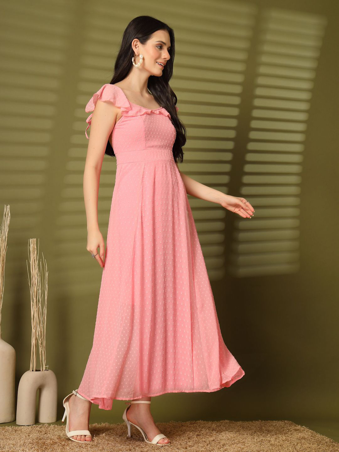 Elegant fit & flare maxi dresses with subtle self-design textures for a refined look.